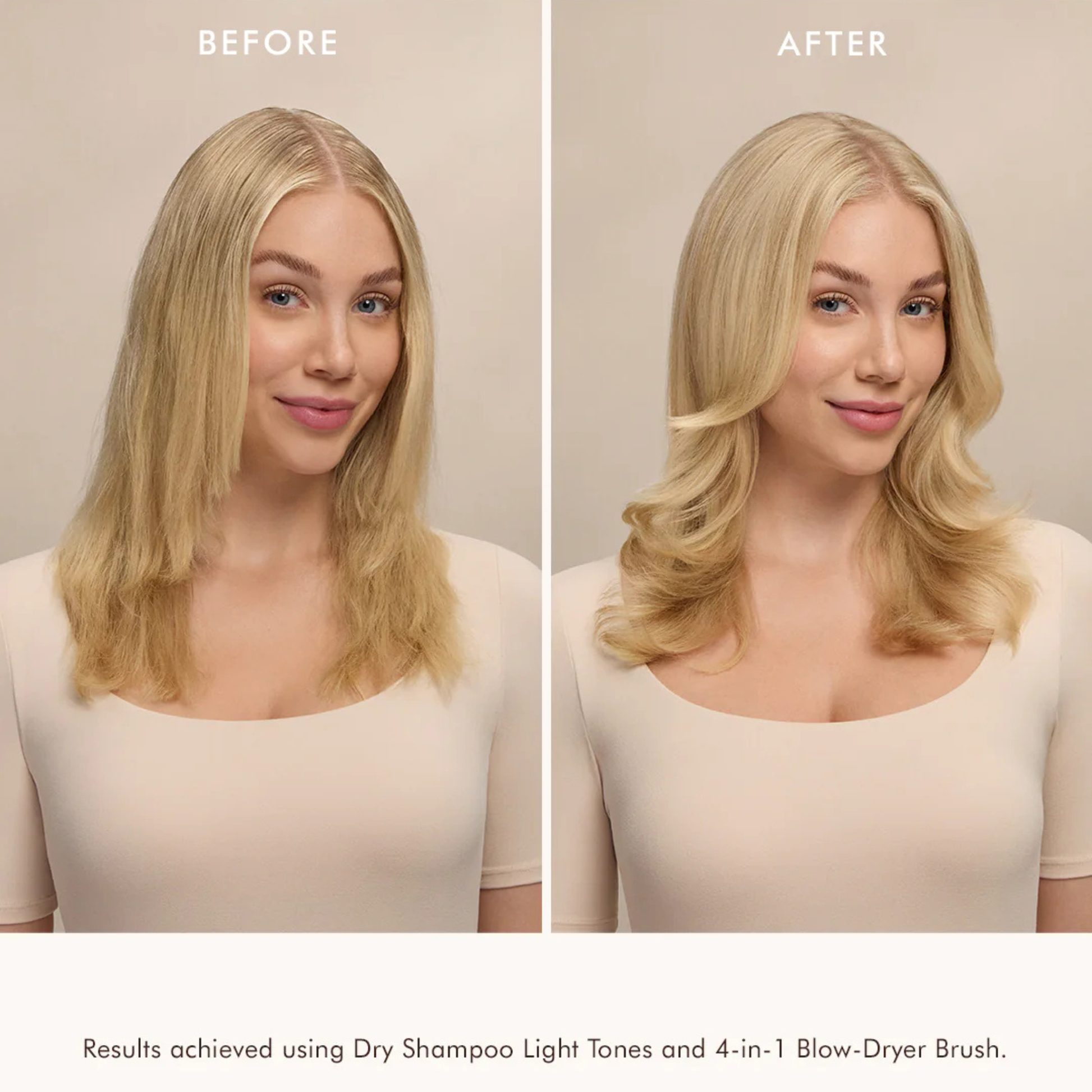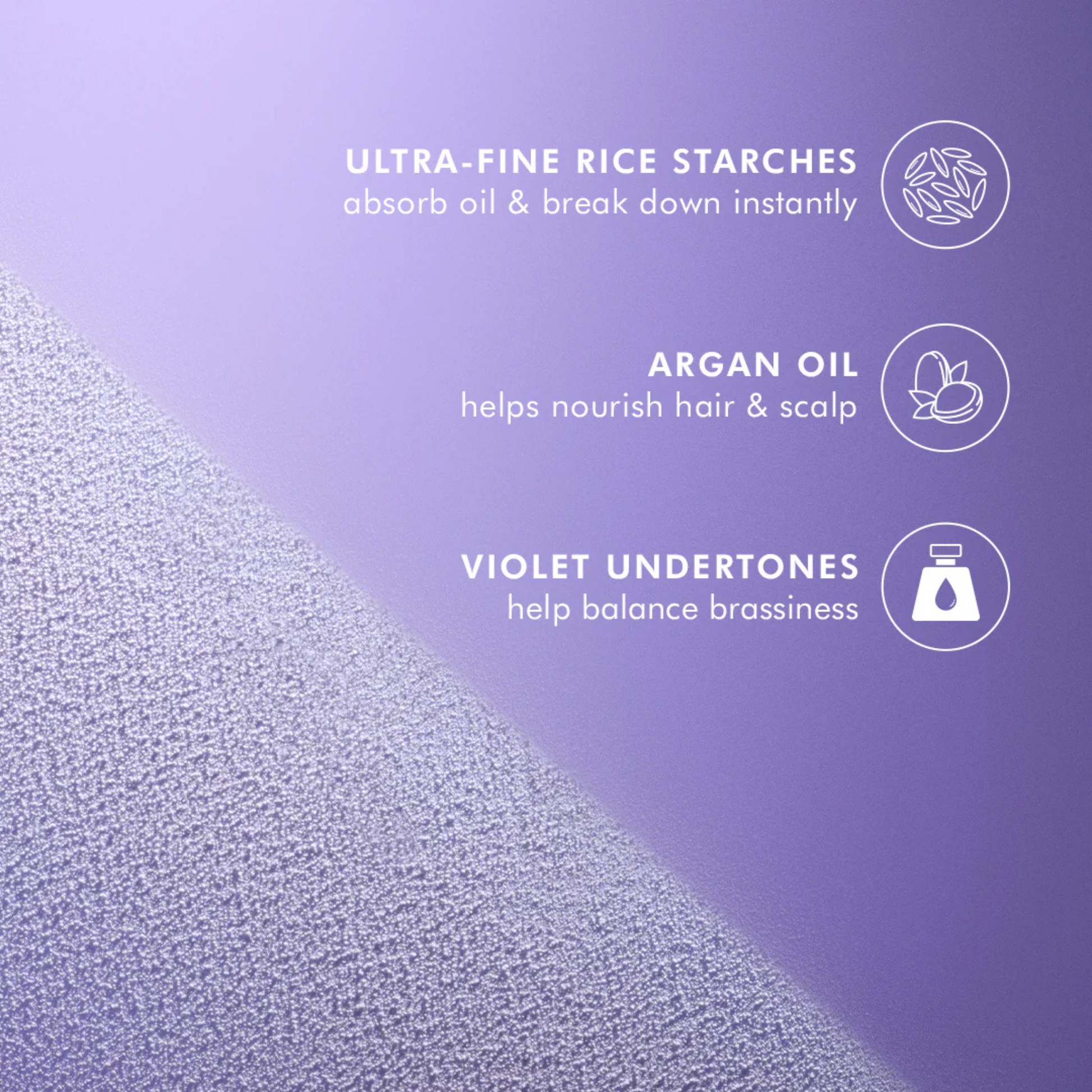 Dry Shampoo for Light Hair Tones features ultra-fine rice starch to absorb oil, buildup, and odor, leaving hair instantly refreshed. Infused with argan oil and UV protection, the formula includes subtle violet undertones to help balance brassiness in blonde hair and enhance the brightness of lighter shades.