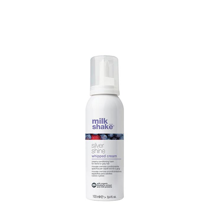 milk_shake Silver Shine Whipped Cream will neutralize yellow tones and delicately condition hair in one gesture. The special violet pigment and organic mixed berries extracts, combined with milk proteins and Integrity 41* preserve hair colour, counteracting unwanted yellow tones. As well detangling the hair, making blonde, lightened, grey or white hair soft and shiny.