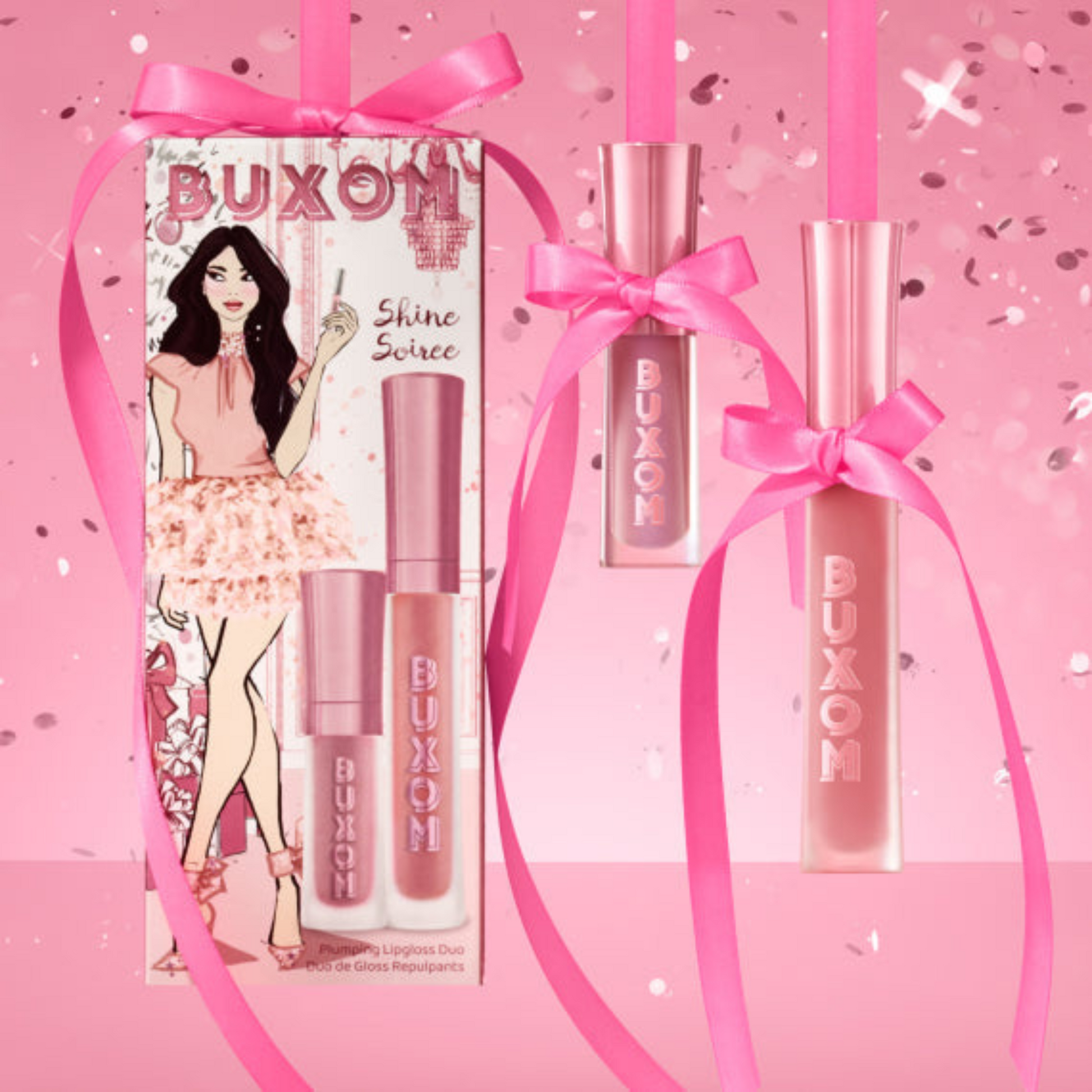 Full-On Lip Cream Duo Kit! Ready to be the life of the party? Get your gloss on and dance the night away with Shine Soiree Plumping Lip Gloss Kit. This limited-edition gift set delivers a mirror-like shine with a refreshing, tingly sensation. Lasting moisture leaves lips feeling weightlessly soft and luscious without feeling sticky to keep you shining all soiree long.